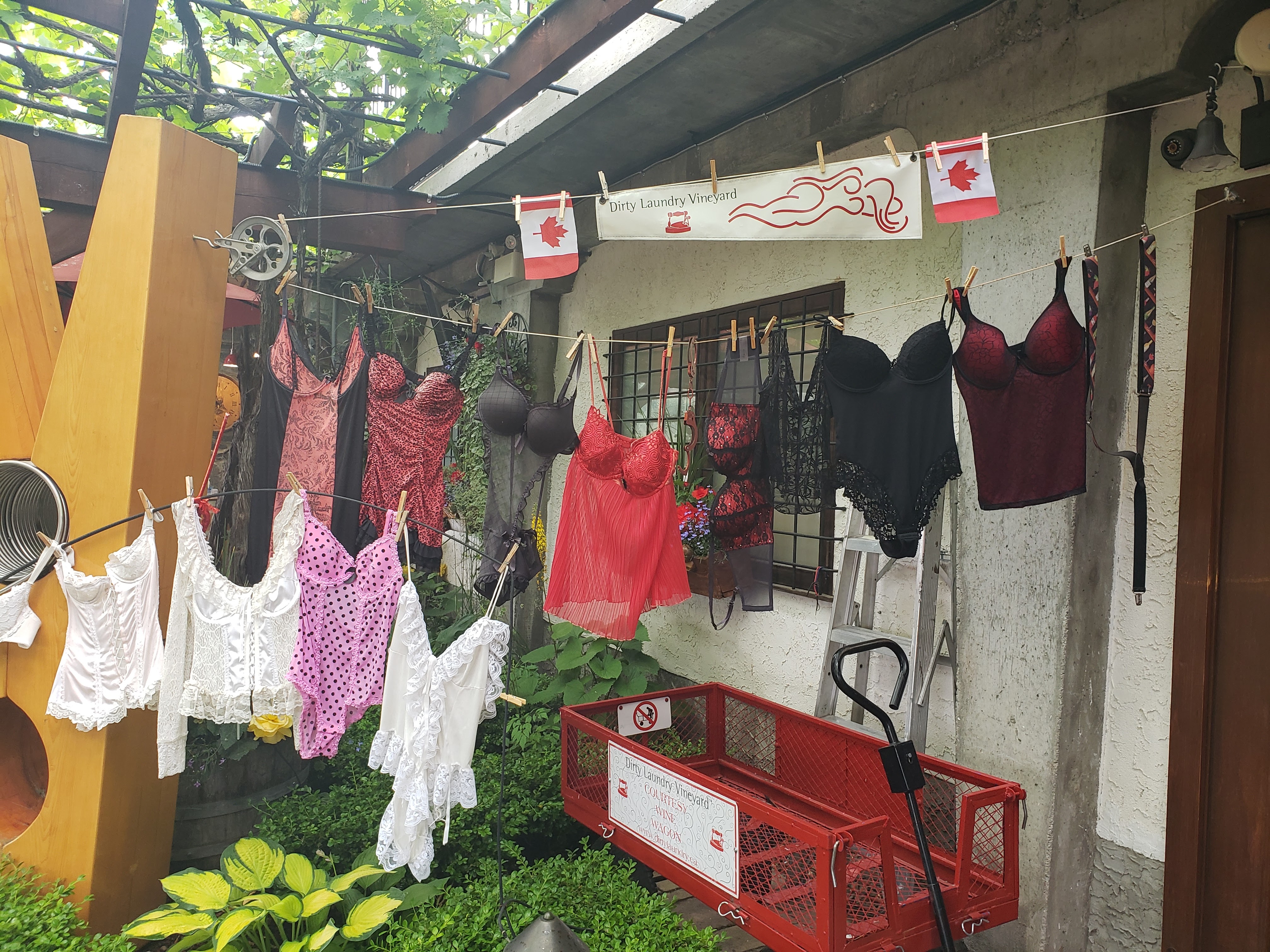 The minute I stepped into Dirty Laundry Vineyard, I thought, “Where has this place been all my life?!” Nestled in the beautiful Okanagan, Dirty Laundry is a winery unlike others. The story is as interesting as the decor…In the late 1800’s when cattlemen, fur traders and goldminers travelled through the Okanagan, all alcohol had to be purchased from the Hudson Bay Company in Vernon, hundreds of kilometres from where thousands of men were working in the area on the construction of the Canadian Pacific Railroad. One such man, Sam Suey, left the grind of the railway labour and opened his first business, a chinese laundry. Seeing an incredible opportunity, Sam used the upstairs area for gambling and a brothel. I mean, the men dropping off their laundry were in need of other services, right? It was all very hush-hush, but the town knew the secret and began calling Sam’s establishment “Dirty Laundry”.